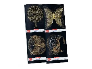 A4-es méretű, 40 lapos, kockás 3D UV felületnemesített iskolai füzet, hófehér belívvel, 4 mintával, Black&Gold.
