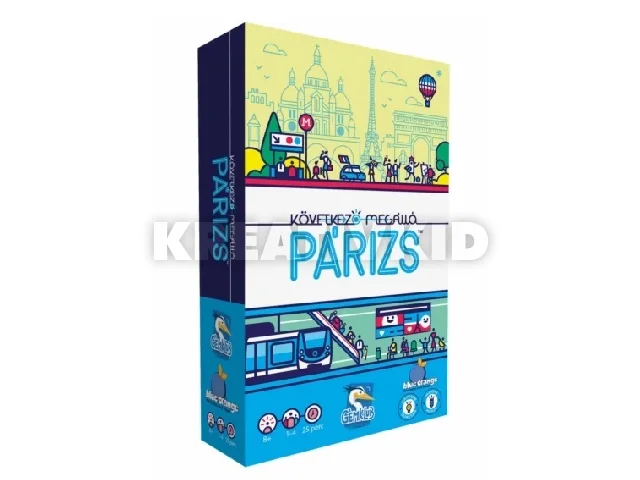 Építs metróhálózatot Párizsban!A Következő megálló: Párizs családi „válassz és írj” típusú társasjáték. A játékosok a felcsapott állomáskártyákból választva rajzolnak be útvonalakat a saját lapjukra.