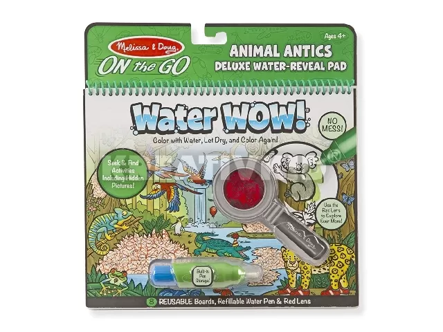 A Water Wow – „Kreatív rajzolás vízzel” szett segítségével kiküszöbölhetjük ezt a problémát. A vizes filctollas színezővel gyermeke könnyedén, maszatmentesen színezheti az aranyos, állatos jelleneteket ábrázoló lapokat. Ráadásul a lapokat újra is festheti – miután a lap megszárad, a festék eltűnik! A hozzátartozó filctollak is újra meg újra feltölthetők.