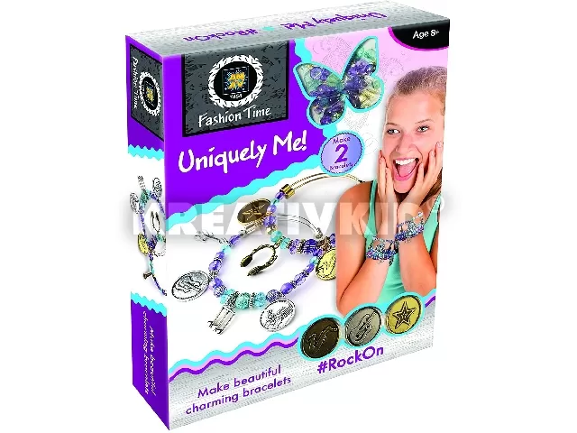 Ezzel a szettel a kislányok karkötőket készíthetnek különféle gyöngyökkel és rocksztár mintákkal. 8 éves kortól ajánlott.