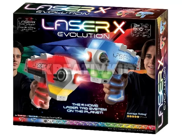 Lézercsaták otthon? Igen, mégpedig az elsőszámú otthoni lasertag rendszerrel, a Laser X Evolutionnel! A legújabb Laser-X Evolution fegyverek (Blaster) valójában nem is lézerrel hanem infravörös sugárral működnek. A hi-tech fegyverek maguk számlálják a találatokat, így nincs szükség külön vevőegységre (pl.: mellényre) sem. Hatótávolságuk 90 méter, töltésük egyszerű, és, hogy még magasabb szintre tudd emelni a fegyverkezelést, akár az interaktív edzői utasítások lehetőségével is élhetsz, angolul. Az élményt tovább fokozza a szabad színválasztás (több, mint 20 árnyalat), és a sztereo hanghatások! Játsszatok beltéren vagy kültéren, ketten vagy még többen!