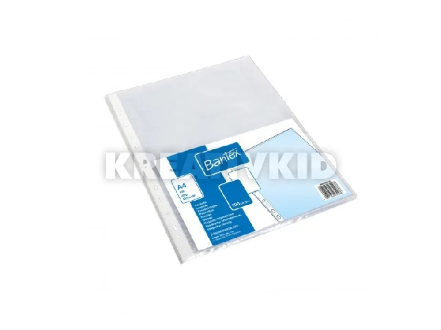 A4-es iratok tárolására és védelmére alkalmas lefűzhető tasak, víztiszta, 45 mikronos, 100 db/csomag