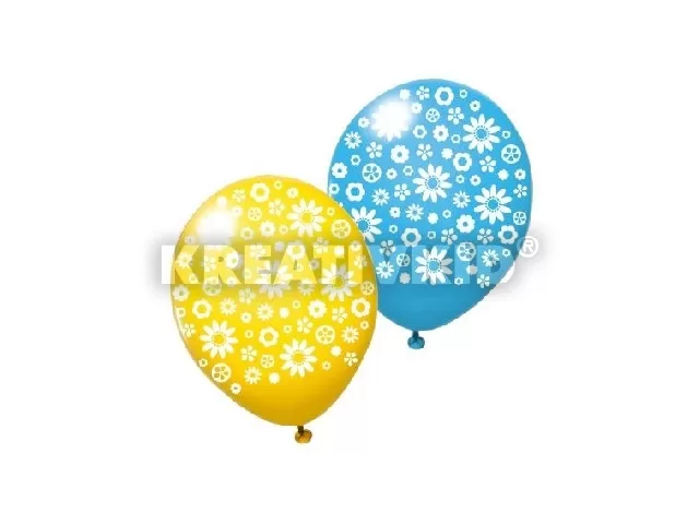 Flowers latex léggömb nyomott mintával, 3 db/csomag, , 3 különféle szín/csomag: sárga, fukszia, égszínkék.