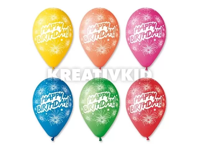 Léggömb, 30 cm, "Happy Birthday", tüzijáték