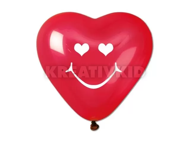 Léggömb, 40 cm, szív alakú, smiley, piros