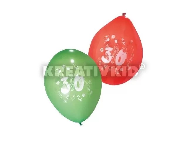 Léggömb 30, többszínű, átmérő: 23-25 cm, kerület: 75-80 cm, héliummal tölthető, 6db/bliszter