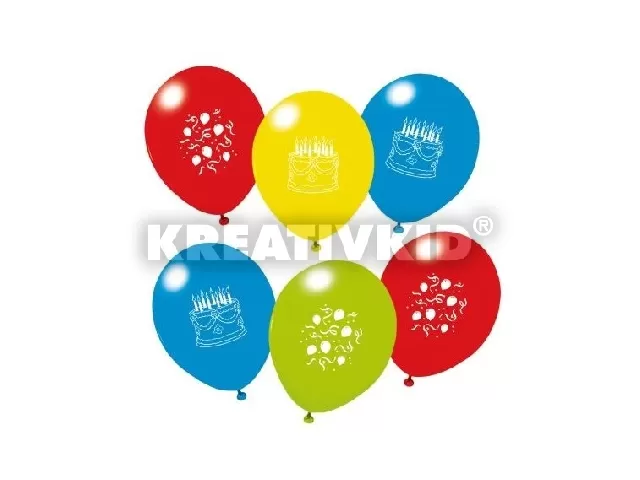 Latex léggömb Szülinap nyomott mintával, 6 db/csomag, több különféle szín/csomag.