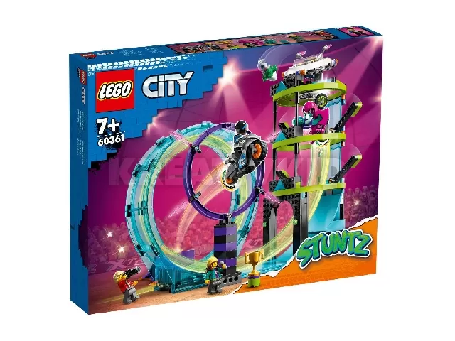 A játékkészlet kaszkadőr kihívásai között egy 360°-os hurkot, egy tűzgyűrűt és egy „földönkívüli torony” függőleges oszlopát, valamint egy ugratórámpát, 2 kaszkadőr motort és 2 motoros minifigurát is találsz. A gyerekek beindíthatják a kaszkadőr motort, hogy átbukfencezzenek a hurkon, átugrassanak a tűzgyűrűn, és elérjék a földönkívüli torony tetejét.