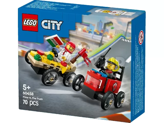LEGO City Great Vehicles 60458 Pizzásautó vs. tűzoltóautó, versenyautós csomag