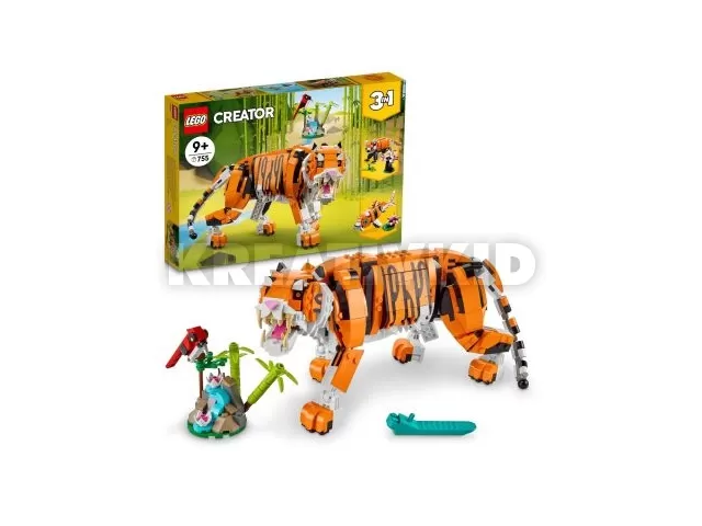 A 9 éves vagy nagyobb, lelkes állatrajongók mókás történeteket játszhatnak el ezzel a zseniális LEGO® Creator 3 az 1-ben Fenséges tigris (31129) szettel. A csomag egy kockákból épült tigrismodellt tartalmaz állítható farokkal, lábbal, testtel, vállal, fejjel és állkapoccsal, emellett az arckifejezését is meg lehet változtatni.