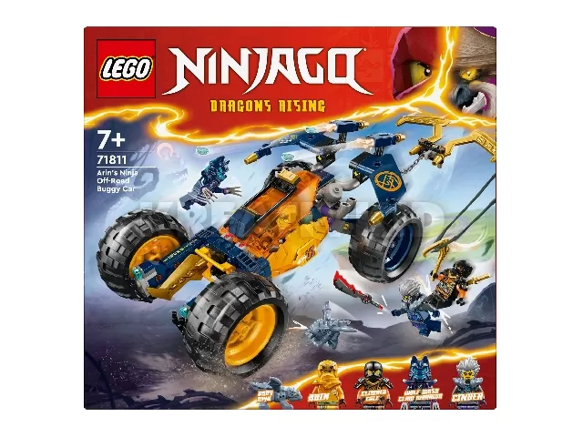 Ha a gyermeked szereti a NINJAGO® Sárkányok birodalma című tévéműsort és a nindzsajátékokat, akkor nem fogsz melléfogni a LEGO® NINJAGO® Arin nindzsa homokfutója (71811) szettel! Ez a LEGO® kockákból építhető játékkészlet olyan valósághű jellemzőkkel rendelkezik, amelyekkel a 7 éves vagy nagyobb fiúk és lányok megépíthetik és kipróbálhatják a játék autót, Arin sárga színében, és mozgó kerekei, felfüggesztése, valamint felnyitható vezetőülése van, ahol 2 minifigura kap helyet. Az autón még 2 korongvető is van, 6 kilőhető koronggal, a hátulján pedig egy hatalmas kampó található, amellyel el lehet kapni a gonosztevőket.