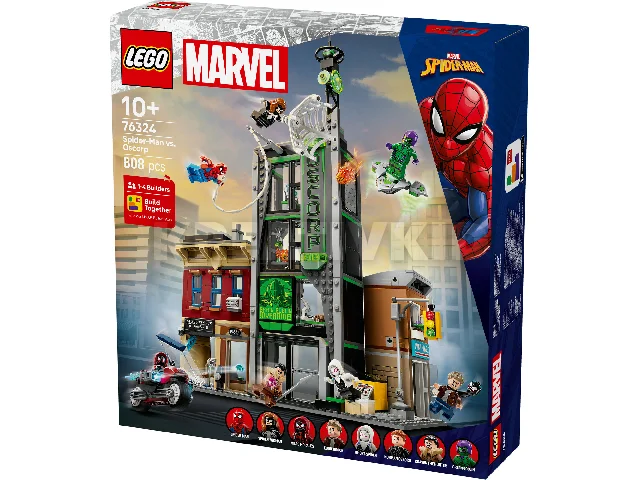- Szuperhős minifigurák – A megépíthető szett 8 LEGO® minifigurát tartalmaz: Pókember, Póknő, Miles Morales, Eddie Brock, Szellempók, Norman Osborn, Kraven, a vadász és Zöld Manó