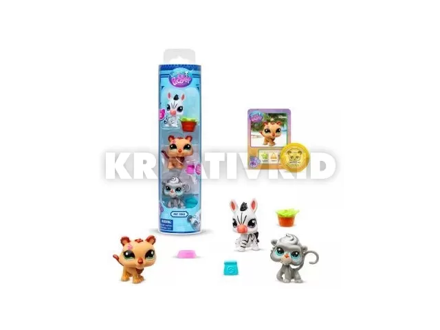 Littlest Pet Shop állatkák: bólogató fejű figurák, egyedi személyiségek. Csomag tartalma: 3 játékfigura, 1 gyűjtőkártya, 3 színes kiegészítő. Virtuális kód az exkluzív állatkákhoz és kalandokhoz.