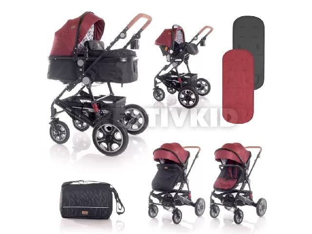 A mózesből néhány mozdulattal praktikusan kialakítható a sportrész. Elegáns, anyagában nyomott mintával készült, így megjelenése egyedivé teszi a babakocsit. Puha szűkítőbetétje kényelmessé teszi a sétákat a babának.