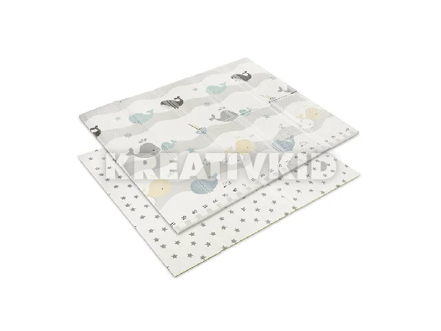 Lorelli Összehajtható 2 oldalas thermo játszószőnyeg 180x200cm - Grey Waves & stars