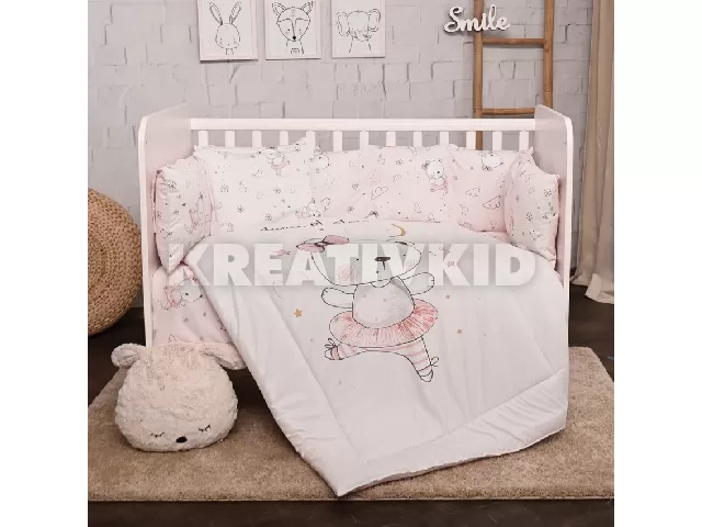Az 5 részes ágynemű garnitúra 360 fokos rácsvédővel vásárolható meg, a baba számára tökéletes alvóhely alakítható ki.