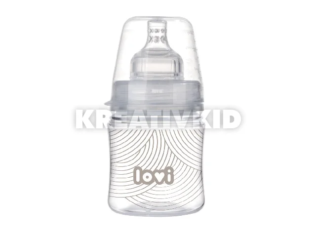 A 120 ml-es cumisüveg biztonságos a szoptatáshoz és kombinálható a Harmony kollekció más termékeivel. A cumisüveg lehetővé teszi a cumisüveges táplálás és a szoptatás kombinálását.• Finom minta - látható tejmennyiség• Űrtartalom 120 ml - látható skálaDinamikus etetőcumi, ami vékony szilikonrétegből készült és hasonlít az anyai mellbimbóhoz.A vastagabb szilikonrétegből készült kemény, széles, formatervezett alap ami a szoptatáshoz hasonlóan megfelelő ajakilleszkedést biztosít. Az etetőcumiban lévő dudoros kialakítás az anyamell felépítését mintázza, szabályozva a tej áramlását és szívását.A SUPERvent légáteresztő rendszer megakadályozza a vákuum kialakulását, minimalizálva a csecsemőkori kólika kialakulását.Rugalmas zárókorong - ehetővé teszi, hogy az üveg szivárgásmentes tartályként szolgáljon étel szállítására és tárolására A mércés pohár a folyadékbevitel biztonságos és alternatív formája az újszülöttek és csecsemők számára. Nem zavarja a csecsemő szopóreflexét. A LOVI cumisüvegek számos fogyasztói díjat nyertek:A készlet a következőket tartalmazza: LOVI 120 ml-es cumisüvegdinamikus etetőcumi 0hó+elasztikus zárókorong csavaros kupak tető mérőpohárral Használati utasítások:A cumisüveget és annak minden részét minden használat előtt alaposan ellenőrizze. A cumi minőségét alapos, minden irányban történő meghúzással tesztelje. A kopás vagy sérülés első jelére ne használja tovább a terméket - cserélje ki egy új termékkel. Ne hagyja a cumit közvetlen napfényben, hőforrás közelében vagy sterilizálószerekben az ajánlottnál hosszabb ideig, mert meggyengülhet. Higiéniai okokból az első használat előtt sterilizálja a cumisüveg szétszerelt részeit és a cumit kb. 5 percig forró vízben. Minden használat előtt mossa ki. A hosszan tartó forralás vagy a kemény víz lerakódásokat okozhat. Ne húzza meg túl szorosan a csavaros kupakot, mert a cumi nem tud megfelelően szellőzni. Ellenőrizze, hogy az étel nem szivárog-e ki a csavaros kupak alól. Ha mikrohullámú sütőben melegíti az ételt, ne feledje, hogy a cumisüvegnek nyitva kell lennie. Különösen ügyeljen a mikrohullámú melegítésre. A felmelegített ételt mindig alaposan keverje meg, és ellenőrizze a hőmérsékletét, mielőtt gyermekének adja. Használat után tisztítsa meg a cumit és a cumisüveget az ételmaradéktól, öblítse le, mossa ki forró vízben, de ne forralja fel. A cumisüveg mosogatógépben mosható (max. 65°C hőmérsékleten). Nem javasoljuk a cumi mosogatógépben történő mosását, mivel a használt mosószerek károsíthatják a terméket. A gyümölcslevek és teák elszíneződést okozhatnak a cumisüvegen/cumin, de ez nem változtatja meg a tulajdonságait. Higiéniai és biztonsági okokból, valamint a csecsemő változó igényei miatt javasoljuk, hogy a cumisüveget 2 havonta cserélje ki.Fontos! Gyermeke biztonsága és egészsége érdekében! Kizárólag felnőtt közvetlen felügyelete mellett használható. Soha ne használja az etetőcumit cumiként. A folyadékok hosszan tartó és rendszeres fogyasztása károsodást okozhat a baba fogzománcában. Mindig ellenőrizze a felszolgált étel hőmérsékletét. A mikrohullámú sütőben történő melegítés egyenetlen, néha túl magas hőmérsékletet okozhat. Ne vágja ki vagy ne növelje meg a cumi lyukait - ezzel károsíthatja a cumit. A termék nem játék. Tartsa az összes alkatrészt gyermekektől távol.FIGYELMEZTETÉS: A LOVI márka a szoptatást ajánlja, mint a baba számára a legjobb és legegészségesebb táplálkozási formát. A baba táplálásának alternatív formáiról mindig konzultáljon gyermekorvosával, szülésznőjével, gyermekápolónőjével vagy gyógyszerészével. Csak akkor használja, ha a szoptatás nem lehetséges vagy nem elégséges. A cumisüveg megfelel az alábbi követelményeknek:Az Európai Parlament és a Tanács 1935/2004/EK rendelete - Az élelmiszerekkel rendeltetésszerűen érintkezésbe kerülő anyagokra és tárgyakra vonatkozó általános követelményekA Bizottság 1935/2004/EK rendelete. 10/2011/EU rendelet az élelmiszerekkel rendeltetésszerűen érintkezésbe kerülő műanyagokról és műanyag tárgyakrólEN 14350-1 - Gyermekápolási cikkek - Ivóeszközök - 1. rész: Általános és mechanikai követelmények és vizsgálatokEN 14350-2 - Gyermekápolási cikkek - Ivóeszközök - 2. rész: Kémiai követelmények és vizsgálatokEN 14350-2 - Gyermekápolási cikkek - Ivóeszközök - 2. rész: Kémiai követelmények és vizsgálatok.Gyermeke biztonsága és egészsége érdekébenFIGYELMEZTETÉS!A folyadékok folyamatos és hosszan tartó szopása fogszuvasodást okozhat.Mindig ellenőrizze az étel hőmérsékletét etetés előtt.Az első sérülés vagy gyengeség jeleinek észlelésekor azonnal dobja ki.A nem használt alkatrészeket tartsa gyermekektől elzárva.Soha ne rögzítse zsinórokhoz, szalagokhoz, csipkékhez vagy a ruházat laza részeihez.A gyermek megfulladhat.Soha ne használja az etetőcumit cumiként.Ezt a terméket mindig felnőtt felügyelete mellett használja.Az üvegedények eltörhetnek.Ezt a terméket mindig felnőtt felügyelete mellett használja.