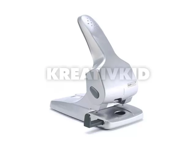 Lyukasztó, nagyteljesítményű, kétlyukú, 65 lap, fém, RAPESCO "Zero 65", ezüst