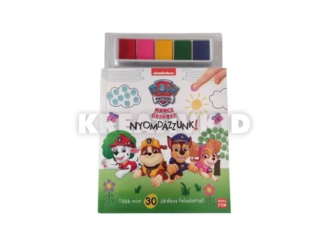 Ez a kutyisztikus foglalkoztatókönyv telis-tele van Mancs Őrjárat-os feladványokkal, melyek arra bátorítják a kicsiket, hogy használják szabadon a fantáziájukat, miközben krumpli- vagy ujjnyomdával díszítik kedvenc kutyihőseiket. Ötszínű nyomdapárna és több mint 30 feladat várja a kezdő és a rutinos ujjnyomdázókat ebben a foglalkoztatókönyvben. Sok más kaland mellett feldíszíthetik a Vakkantburg várát, vagy éppen segíthetnek a bátor kutyiknak a mentésekben.