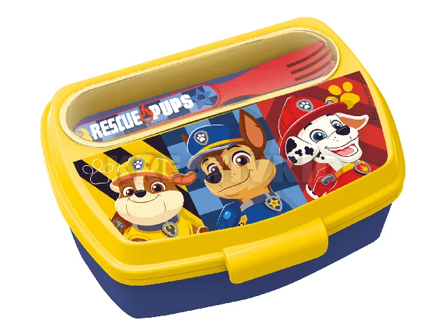 Műa. Mancs Őrjárat szendvicstartó, kanál +villa