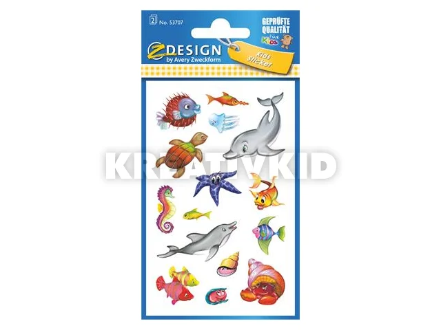 Matrica, papír, 2 ív, 76x120 mm, AVERY ZWECKFORM, "Z-Design No.53707", csillogó tengeri állatok
