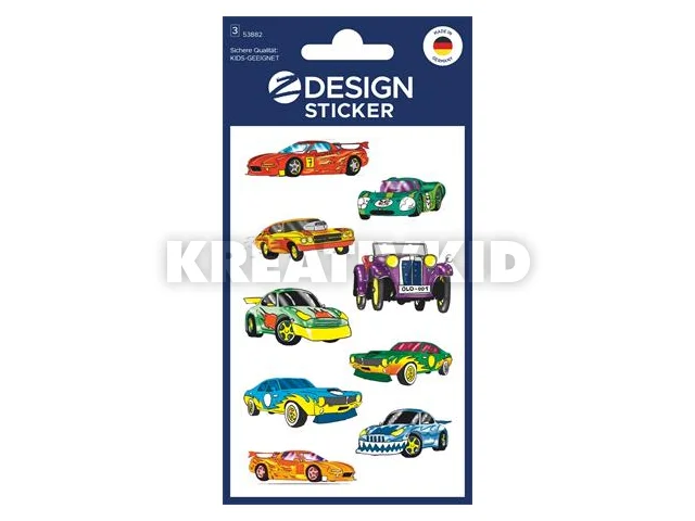 Matrica, papír, 3 ív, 76x120 mm, AVERY ZWECKFORM, "Z-Design No.53882", színes autók