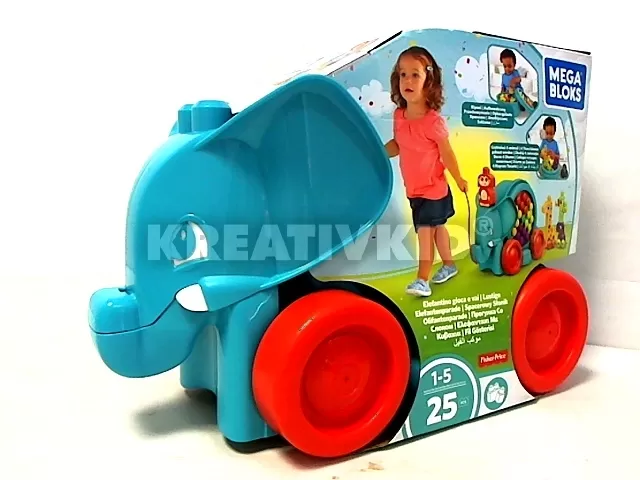 Nagyszerű játékélményt kínál a kicsik számára ez a kedves kis bukfencező elefánt! Az aranyos kispajtást egyszerűen magukkal tudják hordozni a csöppségek, hiszen egy zsinór segítségével négy nagy piros kerekén könnyedén gurul. Kimondottan praktikus a kis építészek számára is, hiszen az elefánt belsejében számos építőelem található, amiknek segítségével