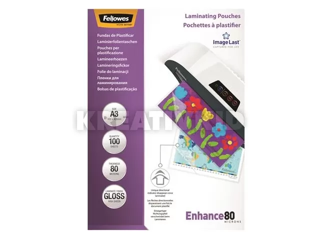 Meleglamináló fólia, 80 mikron, A3, fényes, 100 db, FELLOWES