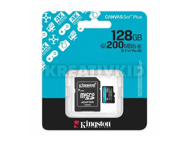 Memóriakártya, microSDXC, 128GB, C10/UHS-I/U3/V30/A2, Gen4, adapter, KINGSTON "Canvas Go! Plus"