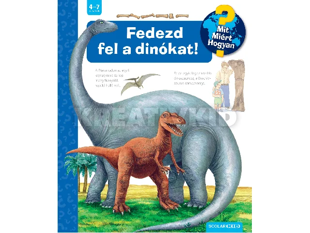 A Ravensburger népszerű Mit? Miért? Hogyan? gyermekkönyvsorozatának 72. kötetét lapozgatva az óvodások és a kisiskolások megtudhatják, kik voltak a dinoszauruszok, mikor e´s hol e´ltek, hol tanulma´nyozhatjuk őket, mivel ta´pla´lkoztak, a növényevő dinoszauruszok hogyan védekeztek a ragadozók ellen, mekkora volt a legnagyobb dinoszaurusz, milyenek voltak a repu¨lo? e´s a tengeri hu¨llo?k.A ko¨nyv a kora´bban Dinoszauruszok ci´mmel megjelent ko¨tet (MMH 18) 1. kiada´sa´nak u´j, javi´tott va´ltozata.A már hazánkban is közkedvelt Ravensburger-játékok közé tartozó képes szakkönyvsorozat kedves illusztrációkkal, a gyerekek életkorának megfelelő információkkal ad választ a rengeteg kérdésre. Minden egyes oldal új témakört jár körül, melyek részletgazdagságában a felnőttek segíthetnek eligazodni, akár egy-egy óvodai vagy kisiskolás foglalkozás keretében. A sorozat nyomdai kivitelezése egyedülállóan magas színvonalú. Fő különlegessége, hogy minden könyv közel 50 titkos ablakot rejt, melyek fedelét felnyitva a gyerekek kielégíthetik a kíváncsiságukat.