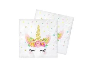 Egyszarvú mintás szalvétacsomag. A csomag 20 darabot tartalmaz. Tökéletes kiegészítője minden unikornis rajongó kislány partijának. A termék mérete: ...