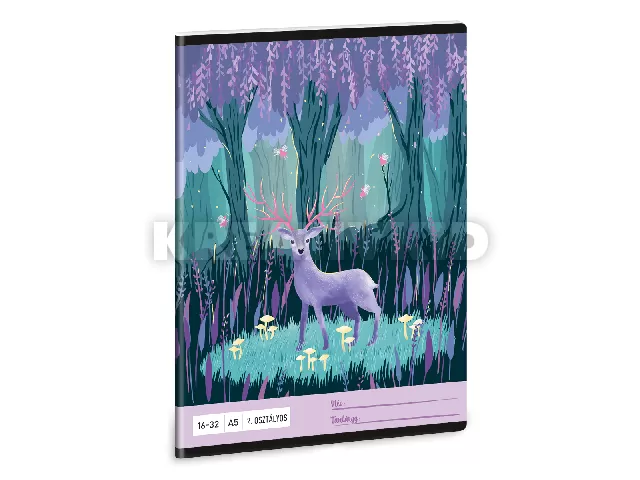 A/5-ös méretű, vonalas füzet 2. osztályos szabványos vonalazással. 32 lapos, belseje 75 gr-os papírból. Borítója 250 gr-os műnyomó kartonra lekerekített sarkokkal, fényes fóliázással, 4 szín nyomással készült.