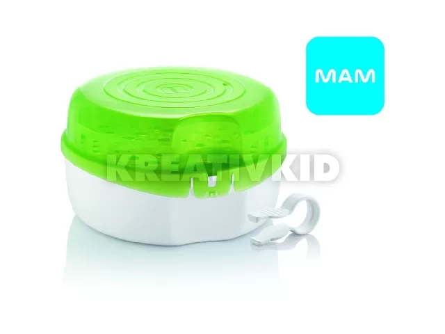 A Mam mikrohullámú sterilizáló doboz segítségével a háztartásokban elõforduló baktériumok 99%-át eltüntetheted a kisbabád által használt cumisüvegekrõl és cumikról. A legtöbb mikrohullámú sütõvel kompatibilis.