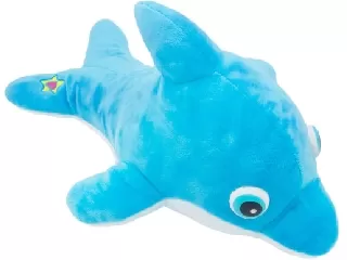 Világító szemű, magas minőségű altató plüssdelfin. Mérete: 34 cm
