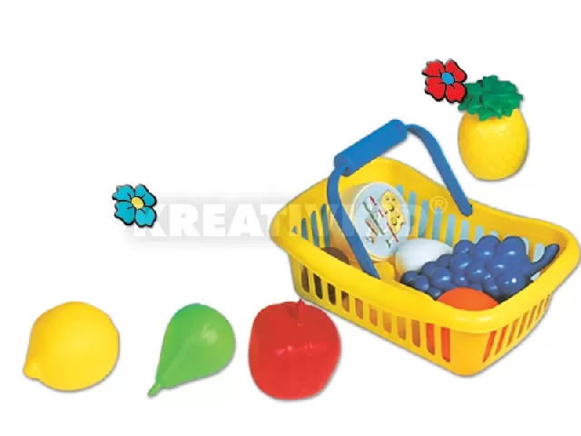 A gyerekek imádják utánozni, amit a felnőttek csinálnak, így a bevásárlást és a konyhában való főzőcskézést is. Ezek a szerepjátékok fejlesztik a képzelőerőt és a problémamegoldó képességet. Ebben a szettben mini gyümölcskosár és műanyag gyümölcsök találhatók, amik elengedhetetlenek egy jó lakomához.