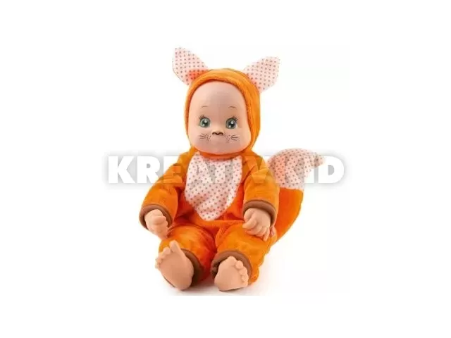 A MiniKiss puszit adó rókababa ölelésre tervezett, élénk narancssárga ruhában és puszihangot ad, ha megnyomják a pocakját. Arcát minőségi műanyag, testét puha textil alkotja. Fejleszti a szociális készségeket, empátiát, finommotorikát. A Smoby által készített, 27 cm magas baba csomagolási mérete 20 x 13 x 13 cm.