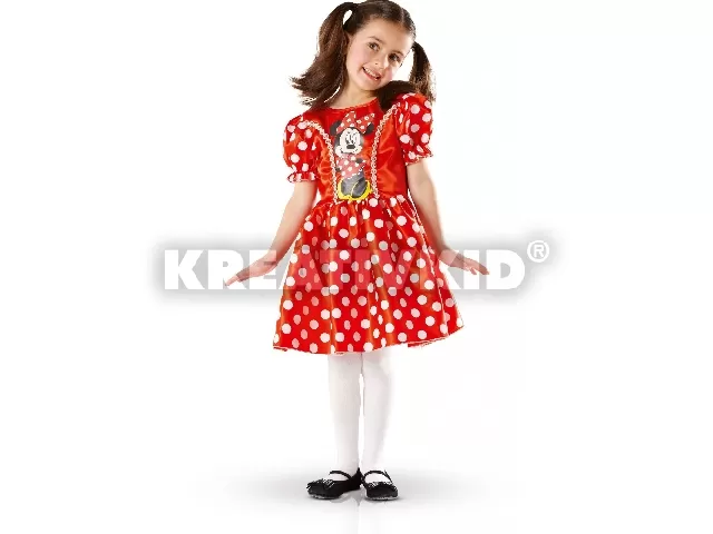 Minnie Egérke vörös alapon fehér pöttyös lánykajelmez, 116-os méretben a Rubies UK termékkínálatából.