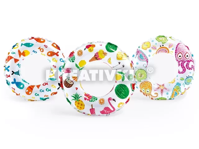 Tengeri csillag, virág és karika mintás úszógumi, 61 cm-es átmérővel. A mintás úszógumi fent tart a víz felszínén, ha nem tudsz még úszni. Az úszóguminak köszönhetően nem fogsz elsüllyedni a vízben. Ha elfáradtál, csak kapaszkodj bele! Az úszógumi biztonsági szeleppel fújható fel. Felfújt átmérő: 61 cm. A játékok külön kaphatóak. A megjegyzésben kérjük tüntesd fel, hogy melyik változatot szeretnéd!