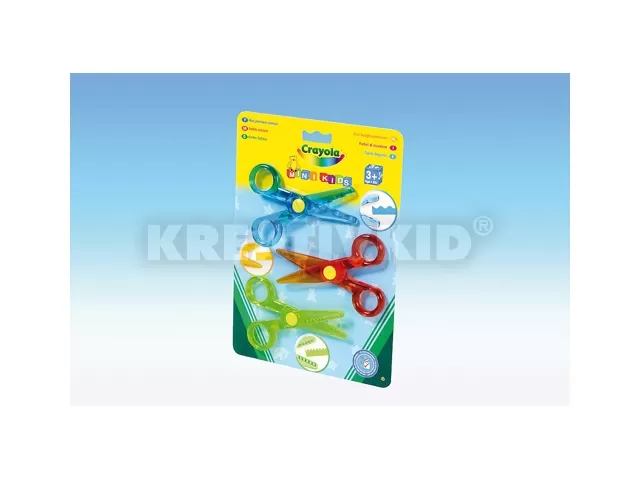 3 db papírvágó, műanyag olló, egyenes, cikkcakk és hullámos vágóéllel. Teljesen műanyag élek és lekerekített végeg, így nem sérülhet meg a gyermek vágás közben, mégis jól lehet vele vágni.