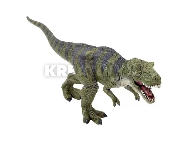A Tyrannosaurus rex minden idők egyik legnagyobb szárazföldi húsevője volt. Nyaka S alakú, az átlagosnál rövidebbé és izmosabbá vált, hogy meg tudja tartani a súlyos fejet. Az aránylag kicsi mellső végtagokon két, karomban végződő ujj található, melyek mellett egy kis kézközépcsont helyezkedik el, egy harmadik ujj maradványaként. A farok hosszú és súlyos, néha több mint negyven csigolyából áll, és a nehéz fej, valamint a felsőtest kiegyensúlyozására szolgált. A Mojo, A Mojotel karöltve, olyan minőségi állatfigurákat készít, amelyek megszólalásig hasonlítanak az igaziakra. A T-rex állkapcsa mozgatható, így még