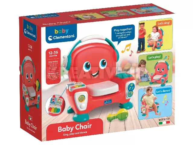 A Clementoni Baby készségfejlesztő zenélő fotel vidám perceket, édes pihenést, rengeteg mókát és tanulási lehetőséget kínál gyermekednek, miközben játszik a fotellel, benne üldögél vagy használja a mellékelt, cuki kiegészítőt már 1 éves kortól.