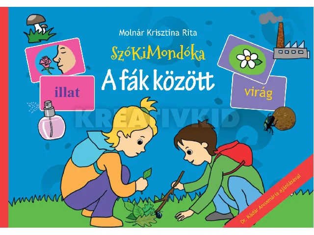 Molnár Krisztina Rita öt részes mesesorozata az öt érzékszervet mutatja be, A fák között témája a szaglás. A testvérek, Móna és Marci családi kiránduláson vesznek részt, közben felfedezik az erdőt a maga gazdag pompájában - egymástól is tanulva eközben. A kötetben található versek, dalok, és a betűzött 8 db szókártya további játékokra és közös, családi tevékenységekre kínálnak lehetőséget. A SzóKiMondóka által kifejlesztett képes tördelés pedig segíti a kicsiket bekapcsolni az olvasásba, nem az olvasástanítás, hanem az olvasóvá nevelés szellemében.