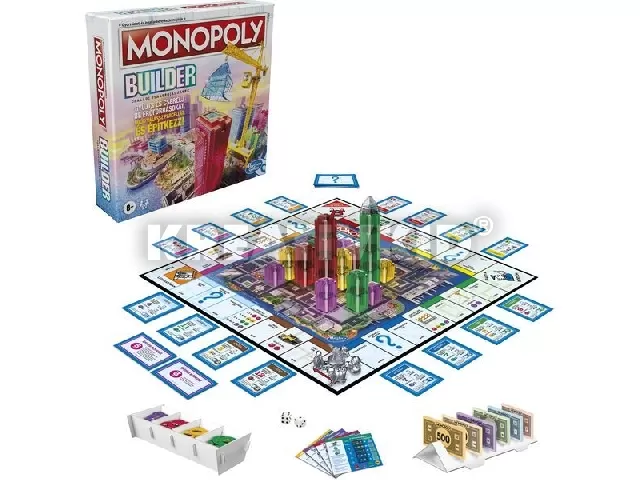 Monopoly Builder családi társasjáték új témával! Köszöntünk a Monopoly-szigeten! Gyűjts és cserélj be építési erőforrásokat, majd válassz parcellát és kezdj építkezni! A játékosoknak nyersanyagokat kell gyűjteniük a szigetről és kereskedniük kell, hogy minél nagyobb felhőkarcolókat és épületeket építhessenek meg. A becserélt erőforrásokért kapott építő elemekkel építhetsz egy szintes vagy több szintes épületeket, tornyokat is, így növelve a pontjaidat. A tetőlakás csúcsából csak egy van, így amikor ez megépül a játék véget ér. Ez a játékos egy halom pontot kap. Az nyeri a játékot aki a legtöbb ponttal rendelkezik.