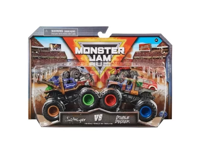Monster Jam 1:64 kisautók 2-es csomag Salvager VS Double Decker