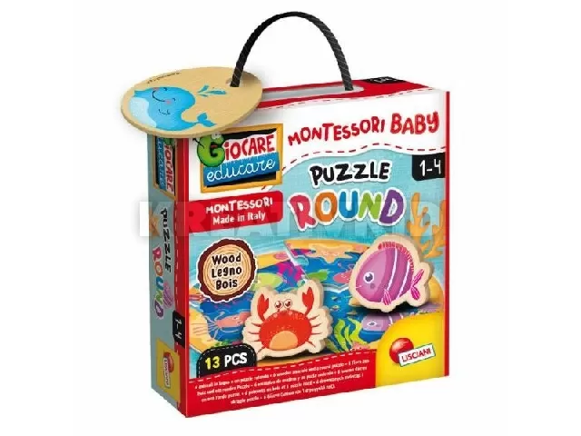 A kisgyerekek egy kör alakú puzzle-t rakhatnak ki, amely kirakott képén, kedves tengeri állatok találhatók. Ha elkészültek a képpel, akkor a fa állatkákat a helyükre tudják illeszteni.