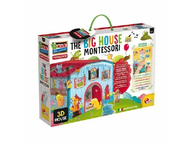 Ez a Montessori módszer alapján készített fantasztikus játékszett egy jókora, megépíthető 3D házat tartalmaz, melyhez megannyi kisállat karakter és kártya tartozik. A kisállatokat a gyerekeknek be kell majd illesztenie a megfelelő helyre, akárcsak egy-egy puzzle-elemet, a kártyákon szereplő tárgyakat pedig meg kell találni a házban. A házikó akár játszóházként is használható. A Montessori módszer lényege, hogy a gyerekek minél több érzékszervüket vonják be a játék során.