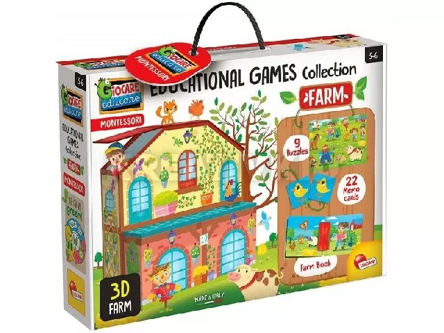A gyerekek egy igen hasznos játékkal gazdagodhatnak ennek a montessori játékgyűjteménynek köszönhetően. Számos szórakoztató és hasznos tevékenységet kínál a játék. Kirakó, memória és egy összeállítható, karton farmház várja a kicsiket. A tanyasi élet és állatok bemutatása mellett ez a játék segít a gyerekek logikájának, figyelmének és memóriakészségének fejlesztésében.