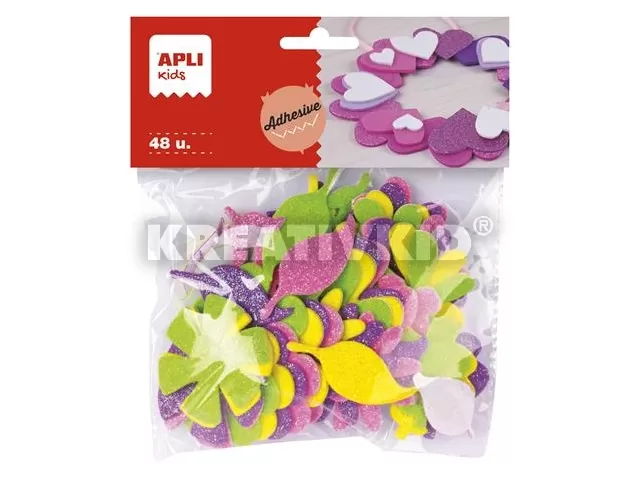 Moosgumi, öntapadó, glitteres, virágok, APLI "Eva Sheets", vegyes színek