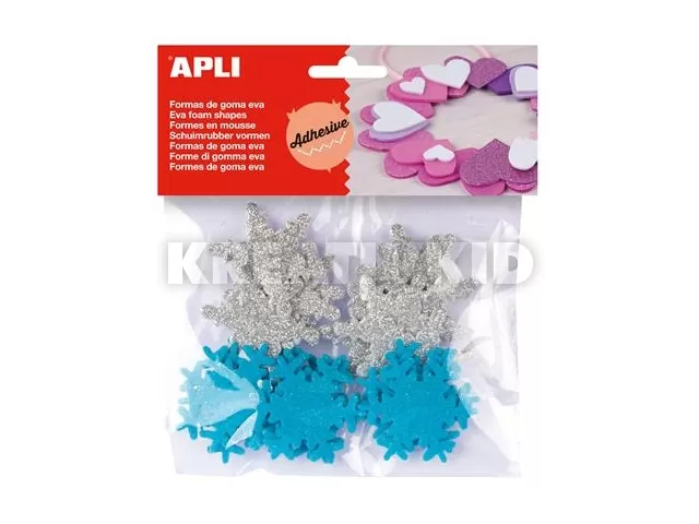 Moosgumi, öntapadó, hópihe, glitteres, APLI Creative "Eva Sheets", kék és ezüst színek