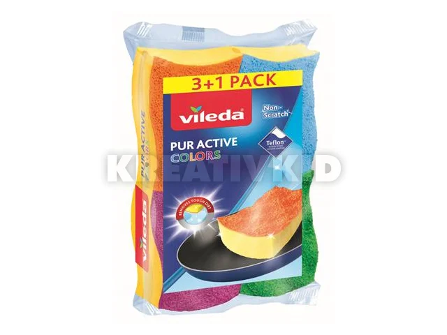 Mosogatószivacs, 3+1 db, VILEDA "Pur Active Colors "